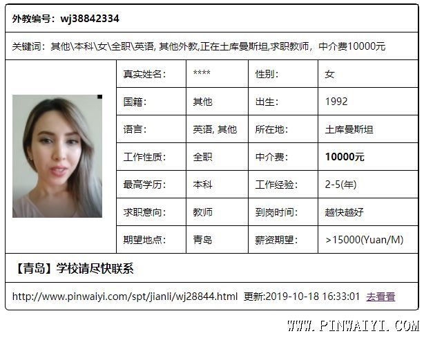 怎样辨别好外教 十九大报告中强调:“人才是实现民族振兴,赢得国际竞争主动的战略资源”,如何开发人才资源,扩充人才来源是永不过时的话题。随着中国综合国力及国际影响力的稳步提升,原来越多的外国人来到中国工作学习。我国应该把握机遇,除了用好本地人才及留学人才,还有懂得吸引和保留优秀的外籍人才,集天下英才而用。 怎样辨别好外教,首先我们先要知道什么样的外教是好外教。是不是国籍决定的,不是,哪个国家的人都是有好有坏,是不是外教外教决定的,也不是,好的外教不代表他有充实的内在。好外教首先是一个好公民,品格端正,善良向上,热爱生活热爱工作,其次就是要有好的发音,优良的教学水平。 近期正在求职的外教: 在工作早期,曾经遇见过这么一个事情。一个南非女外教,在美国上过高中,南非完成的大学学业,大学毕业来中国找工作。我们帮她介绍了几个学校,双方最终和一个东北的学校达成一致。学校那边非常开心,觉得找到一个母语外教,而且薪资要求不高,大约是14k月薪,而且年轻,性价比从各种方面来说都是很高,安排好了学生和住宿就等外教到岗,因为很满意,所以还为外教购买了到校的机票,由学校出钱。在到校那天,我们突然接到老师的电话说“怎么办,我被骗了,外教坐了我们的飞机,却没见到人”。原来因为教学地点和机场距离稍远,学校安排了老师专门去机场接外教,等了半天发现乘客已经走完了也没看到外教人,一去查,发现外教确实登机了,但是转头坐了出租车不知所踪。这个事情因为性质过于恶劣,所以我们立刻与外教取得沟通,询问详细情况。外教直接拉黑了我们,且拒绝接听回复所有电话和信息。因为我们还是有自己的办法,所以后来还是让外教归还了学校的机票钱,并亲自和学校道歉。这个事情就是我从业经历中印象非常深刻的事情,一直在我后期的工作警示着要更仔细的排查风险。 近期正在求职的外教: 外教的人品是第一位的,即使她是母语国家,受到过高等教育(查看博士外教),也不代表她一定是好外教。这件事情也是告诉我们不要迷信国籍。 外教的口音好教学能力是第二个需要重视的,有些学校上来就找我们要金发碧眼的外教,只要好看,皮肤白,口音不重要,就是带孩子做做游戏就可以,听到这样的话我们是很震惊的。有些外教也会和我们反映,学校为什么不重视我们的教学经验,这样的学校不尊重我,我不喜欢。如果外教有好的外表自然是好的,但是有认真负责的心和好的教学能力的外教应该是更值得被尊重的。 近期正在求职的外教: |