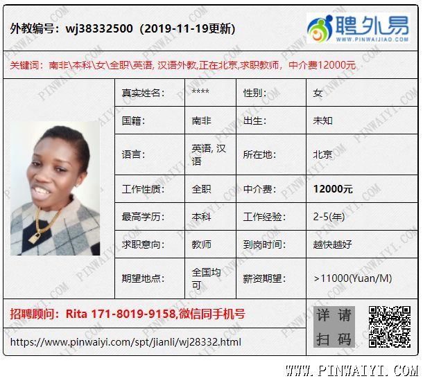 大家好!相信大家对我们的外教都很感兴趣,想要更深一步的了解我们的外教学历和个人情况,那么小编就来满足你们的愿望啦,我会每天都为大家推荐一些优质的外教,每天哦!有需要的老师要多多关注专题频道,相信总有一个外教适合你的学校!话不多说,开始推荐! 在上海,本科,求职上海,自备商务签(自己续),有教学经验,正在考TESOL,尽快到岗 学生签(2020年2月到期),有教学经验,会音乐,当过音乐老师,TESOL,学生签到期后可办理工签,求职地不限,尽快到岗 在菲律宾 ,有多年教学经验,喜欢小朋友,有活力,求职南方城市,工作签证已经认证,尽快到岗 现在济南,读研究生,美国中亚大学证书,全职,随时到岗,可以不提供住宿 ,在中亚美国大学任教过学,是青少年和大学生的导师。是经济学和数学老师。