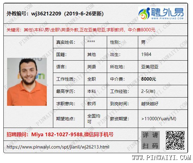 现在因为英文的普及性,越来越多的人能说一口流利的英语,尤其在英语母语国家有留学经验或者在母语国家有生活经验的人通常有更加纯正的英语口音,而在中国很多的学校也在越来越倾向于请外国人做英文老师,而在挑选英文老师的时候更是应该参考更方面的因素,而不是只看形象仅关注国籍 近期正在求职的外教: 首先在挑选外教时,如果外教会说基本的汉语是最好不过了,这样就不需要中国老师做助理在一旁做解释,够孩子沟通起来也更通畅(查看英国外教) 因为是英语老师所以最主要的是老师的英语知识储备量足够大,才不会带给学生错误的指导,错误的知识被输入大脑会影响学生长久的学习。其次外教的语音应该更纯正,更规范,更自然,同时了解学生心理掌握教育心理学的自备知识.(查看美国外教)