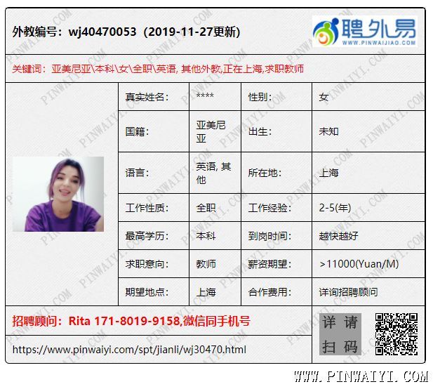 大家好!相信大家对我们的外教都很感兴趣,想要更深一步的了解我们的外教学历和个人情况,那么小编就来满足你们的愿望啦,我会每天都为大家推荐一些优质的外教,每天哦!有需要的老师要多多关注专题频道,相信总有一个外教适合你的学校!话不多说,开始推荐! 本科,教学经验3年以上,发音标准,现于济宁,有商务签和工签资料,求职较大城市,和女朋友一起,可以接受一个城市不同学校 本科,英语语言学专业,工作经验2年以上,TESOL,现于上海,自理工签,发音很好 美国生活, 口音好,有爱心, 有耐心 工签资料齐全,求职深圳职位,可以尽快上岗。 签证到2020.12到期。求职北京职位,随时上岗。 以上就是今天小编推荐的外教啦! 如果没有您看上的,可以打开我们的外教库,有海量外教供您选择! 您也可以直接发送招聘需求给我们,我们会根据您的要求为您精心挑选外教! |