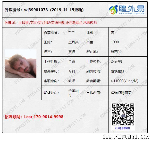 很多学校在最初招聘外教的时候只是听说可以招聘外教,看到某家机构在使用外教,具体怎么招聘知之甚少,有的通过朋友介绍的,朋友有认识的外国人,可以来中国工作,经过各种繁琐的手续来到中国,真正一教学就发现问题了,外教没有教学经验,没有教育相关背景,教学和发音都有问题,孩子们在课堂中根本不跟外教交流,外教无法控堂,真正上课的只有助教老师,那这样的外教肯定是有问题的,课后各种培训,练课,能提高的算好外教了,还有很多是不适合教学,只得辞退重新聘请。 近期正在求职的外教: 还有的学校是具备一定招聘外教经验的,有使用过外教,了解基本的沟通技巧,可以通过网络自主招聘外教,这种方式可以大大节省学校的招聘预算,但是实际上招聘的周期会很长,事无巨细必须要亲力亲为,从沟通职位到让外教产生信任,然后通过外专局官方网站注册提交资料,或者被驳回重新整理提交,对学校的招聘老师和外教都是巨大的考验,很多学校在坚持一两次自主招聘后,只得另辟蹊径,其耗费的精力和时间远超招聘预算的成本。 近期正在求职的外教: 再就是很多学校是通过一两家中介公司直接招聘外教的,这种情况下往往被匹配的资源有限,很多时候都是在等资源,推荐过来的还不一定合适,合适的也不一定约到面试,或者面试后不一定能到岗,学校往往会耗费大量的时间在等待匹配,学生们等待上课的时候往往不能及时到岗。