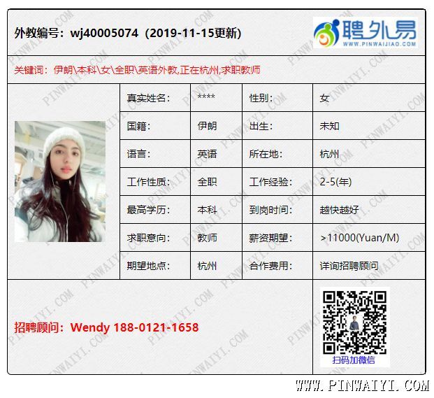 目前国内最高效,最实用的招聘模式就是通过聘外易平台模式来招聘,经常招聘外教的学校会知道,其实求职哪里的外教都有,只是不确定求职当地的外教在哪家机构的手里面,这种招聘模式的高效在于,可以准确的匹配到求职当地的外教,众多机构可以同时匹配给一家学校外教资源,学校可选资源多,只要学校给的薪资待遇合理,都可以非常快速的招聘到合适的外教,外教到岗前从面试到签合同办理工签,中介机构会一直辅助跟进,直到外教成功到岗。 近期正在求职的外教: 招聘外教选对模式非常重要,不仅要考虑招聘成本,更应该考虑高效省时又省心,好外教都是挑出来的,享受轻松招聘就选聘外易! |