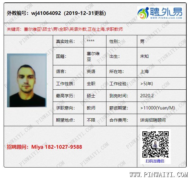 随着中国经济水平的不断发展,英语在我们的日常生活中越来越重要,随着我国在国际上的地位不断提高,越来越多的外国人来到我国就业、工作,所以我们身边用到英语的地方也越来越多,在以为了使得各个国家可以更加方便的联系和交流,推动全球化不断发展,将英语这门语言作为全球性通用语言,所以世界上各个国家都开始学起了英语,在一开始,可能我国教育的普及程度还没有如今这么高,但是随着我们国家经济水平的逐渐提高,对人民教育的重视程度也不断提升,所以我们国家越来越重视孩子英语的学习,越来越多的学校纷纷聘请了外国人来教习英语这一门学科,但是随着外教数量的越来越多,外教招聘也出现了一些问题,今天我们就来告诉大家一些外教招聘的小知识,希望对你有帮助。 近期正在求职的外教: 想要招聘外教的学校首先要知道一下几点: 1、如果学校的英语教学主要以中教为主,外教只是辅助的话,那么不建议直接找全职外教,因为不仅浪费了教学成本,还会造成外教资源的浪费。 2、学校独立聘请外教是需要办理很多手续和满足一定的条件才可以的进行外教聘请,例如需要学校有500平方米的实用面积,所以我们建议可以和外教中介机构合作来聘请外教。 3、学校给出的外教薪资情况要符合整体外教薪资水平才比较容易招聘外教,适当的根据自己学校的具体情况和能够给外教的福利待遇而定,如果学校的知名度很高,而且处于发达城市,给外教提供的福利待遇比较好,那么薪资可以适当的低一些,但是也不能低于正常水平。 4、如果学校对外教的发音比较看重,那么还是尽量的聘请母语外教。 近期正在求职的外教: 选择外教的时候一定要注意一下这几点: 1、如果想要选择外教中介机构进行合作,那么一定要选择聘外经验丰富,公司成立时间长,并且有一定的品牌知名度的外教中介机构,因为这样的外教中介经验丰富,手里外教资源多,可以根据学校的需求为学校挑选出最适合学校的外教,省心省力。 2、要看自己学校的具体情况,如果学校本身比较注重外教的教学能力,那么一定要选择一些教学经验丰富,发音比较标准的母语国家的外教,这些外教虽然工资要求比较高,但是他是最能符合那些对外教的教学能力有着很高要求的学校的。 3、根据学生的具体情况来寻找外教,如果学生的英语基础不是很扎实,英语能力比较差的话,那么学校就要选择一位教学经验比较丰富的外教,因为有丰富教学经验的外教会懂得如何启发,引导学生去学习英语,而不是一味的传授知识,一味的传授知识,对于英语基础比较差的学生来讲,是很难完全将知识吸收掉的。 近期正在求职的外教: |