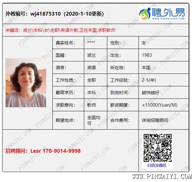 外教提出的要求-影响招聘单位是否录用的因素每年要给全国各地不同省份不同性质的招聘单位推送好多外教人选,前期面试一切顺利的话,最后双方能否签订合同,也跟学校提供的合同里面的内容,细节有很大的关系,下面就说最近我这边遇见的几个机构跟外教谈论合同时出现的一些情况~ 近期正在求职的外教: 前段时间给湖南下面的一个县城的培训机构推荐外教,他们那边是可以接受一对情侣,夫妻或者是俩姐妹这样的人选的,然后根据学校的要求,我们平台这边就加急给他们筛选了几对人选,其中2对夫妻,还有俩好姐妹,这几对人选分别是不同的时间段先后推送的这样,但是很可惜的是这几对人选最后都没能去这个单位。其中第一对人选(查看女外教),是学校跟外教面试完之后,双方都觉得蛮不错的,然后学校给他们的薪资也不低,给了一人15000的月薪,另外加单独的住宿,相对来说这个待遇很不错的了。然后我印象比较深刻的是,学校发给外教的合同,外教他们一下列出来10几条问题,然后学校的老师也很有耐心,逐条都给外教解释了,最后外教也说没问题了,结果让他们签合同的时候,他们说对不起,我们还是觉得这个城市有点小,不是太适合我们,学校老师当时就觉得,最初的时候就跟他们介绍过当地的各种情况的,然后等到合同细节各种都谈好了,又说因为地方的缘故不选择了,说实话,也不知道那只是他们的说辞,还是其他的原因,也许他们找到了更适合的职位这样,反正最终就是没有签署合同录用这样。其中另一对夫妻更逗,也是各种的合同细节都谈了(查看博士外教),能加的都让学校老师给加到合同中去,老师说也可以理解,毕竟大家都觉得加到书面上会更有说服力这样,只要是双方谈拢了就可以。我记得最后他们一直在谈论的内容,是外教的到岗时间,本来外教说可以早到一些,老师说可以的,后来外教他们又说因为在自己国家还有些其他的事情,所以得推迟些到岗时间,学校那边商量过后也同意了,就等外教他们签署合同,然后提前买来华的机票这样的,到时候老师这边好做提前安排,结果等了又等,他们也是不签署合同,我们都很纳闷,明明一切都沟通得很好的,到底是什么原因让他们迟迟未定呢?在我们的再三追问下,外教说私人原因不想选择这里了,我们听了也是无语了,也没再联系她们,结果过了段时间后,他们又问我们那个学校的职位还有不,他们一直也没有找到其他的职位,我们想着再给学校说下吧(查看美国外教),结果学校老师说,他们再好我也不用了,前期都这么难沟通的话,等到了学校不知道还会出什么问题?会不会更难管理这样?其实本来这是个很好的offer,但是因为他们自己的原因,导致最后错失了这个机会! 近期正在求职的外教: 有时候在选择一个职位时,如果你的要求太多,或者是你太挑拣的话,等你对比了好多个职位之后,才发现也许最初的那个就很好,当你想再接受的时候,他也不会等着你了,已经被其他外教接受了。所以该决定的时候就决定,如果提出太多的要求的时候,也许换位思考下会更好,会更有利于自己早日找到适合自己的~ 近期正在求职的外教: |