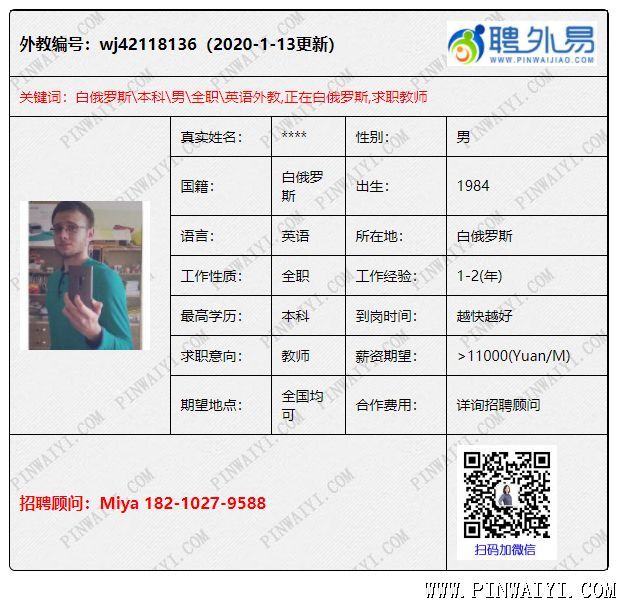 有些关于外教的硬性要求其实是有一定道理的,比如是否来自于母语国家,是不是英语专业毕业的,这些都会影响到一个外教的口语是否标准,能不能教会孩子正宗的英语口语,所以判断一个外教是否优秀首先要看他的口发音是否标准,而一般来自母语国家和在母语国家修读过语言专业的外教口语都比较好。其次就是教学经验,一般有在国内教学经验的外教在接受外教工作的时候比较容易快速的进入工作状态,因为他们很熟悉工作流程和工作内容,(查看俄罗斯外教)我们不用在进行过多的培训或者带外教熟悉工作了,这种外教一般来说也是比较优秀的外教。 近期正在求职的外教: 2、来自母语国家的外教都是好外教吗?答案是否定的。