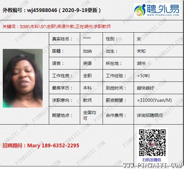 本科外教,2-5年工作经验,正在贵阳,求职江苏外教或安徽外教 (编辑:Lisa) ——————————————————————————————————————————