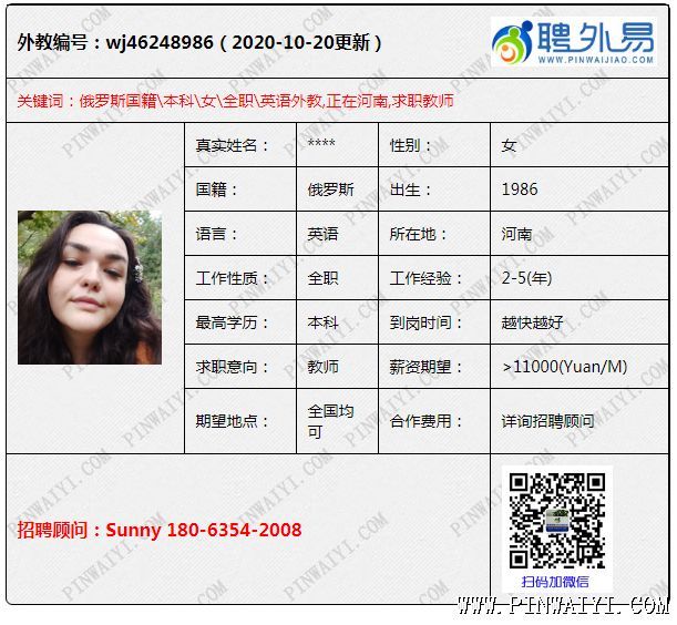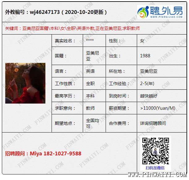 外教招聘快讯:每日外教推荐2020年10月21日 外教有1-2年教学经验,性格活泼,正在郑州,求职河南 本科外教,1-2年工作经验,正在绍兴,求职江苏外教 心理学和英语本科,经验3年以上,公司类型签证,17K起,求职培训班,12月可以开始工作 亚美尼亚外教,tefl,历史本科,经验3年,幼儿园和培训班都有经验,已经认证资料,求职不限制 牙买加女,居留许可到7月过期,求职浙杭工作(不是很限制,如果可以尽快申请),有丰富经验 硕士外教,自理学生签(2021.03),求职北京,目前在通州 英语专业本科,tefl,工签资料齐全,只有健康证明,求职上海,深圳,广州,苏州等 硕士,tefl,工签转聘,5年工作经验,求职杭州或者上海,目前在杭州,11.15左右到岗 (编辑:Lisa) |