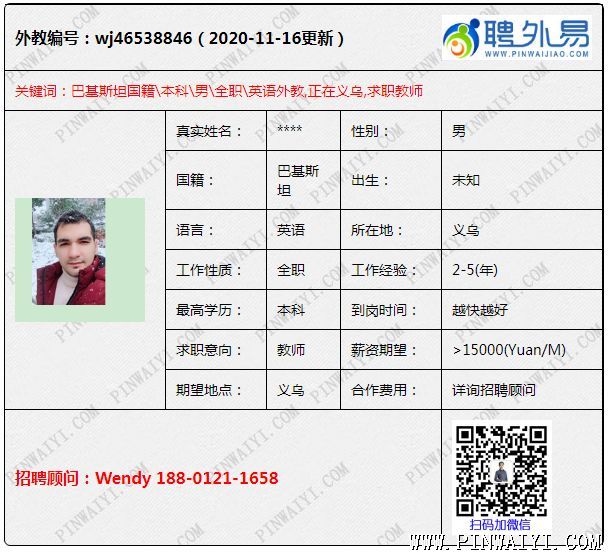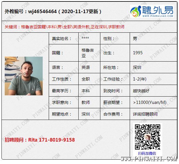 外教招聘快讯:每日外教推荐2020年11月18日出自:聘外易