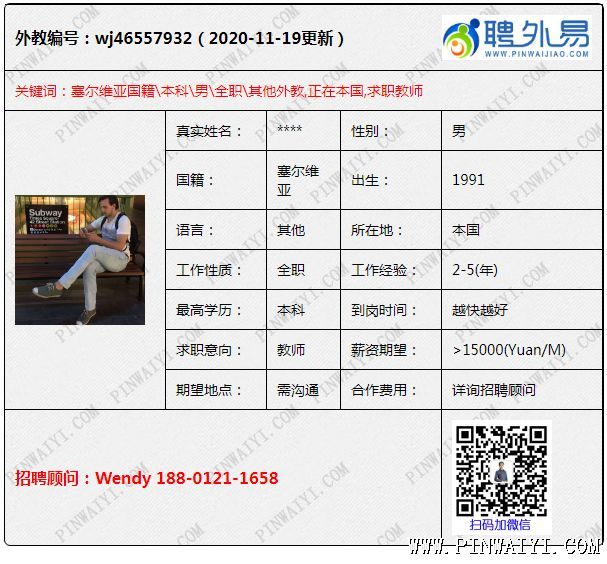 哥伦比亚男,本科,自理工签,求职北京兼职,目前在北京
