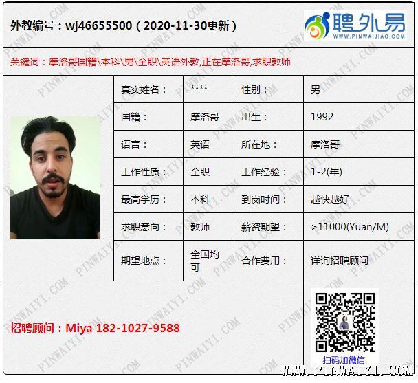 阿尔巴尼亚男,本科,自理续签,求职长沙兼职(周一周二全天,其他3点之前),目前在长沙