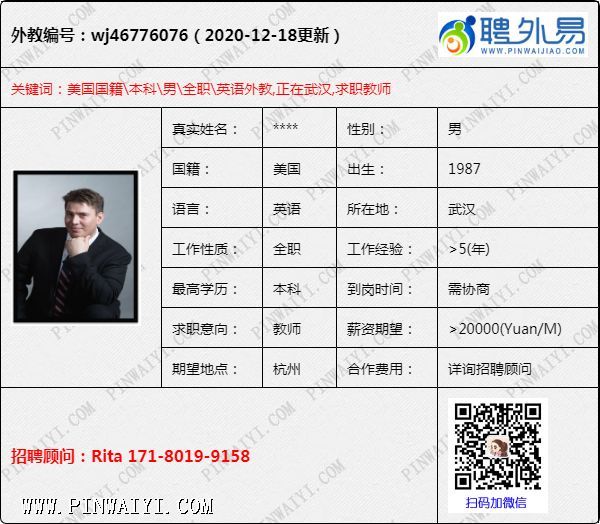 外教招聘快讯:每日外教推荐2020年12月19日
