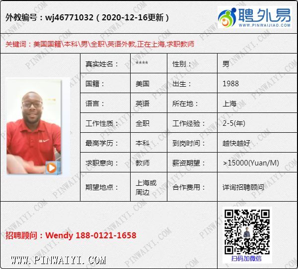 美国外教,在上海,求职上海或周边职位