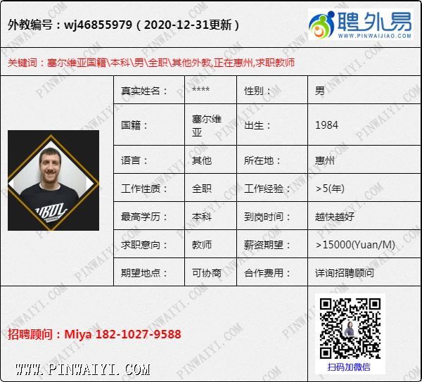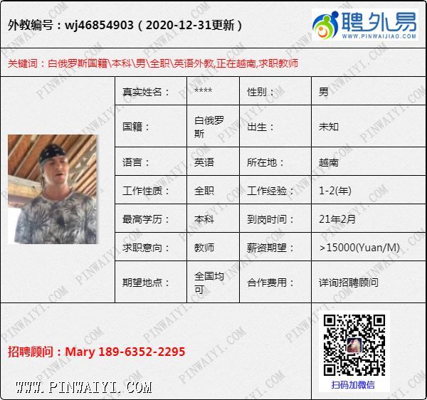 外教招聘快讯:每日外教推荐2021年1月4日