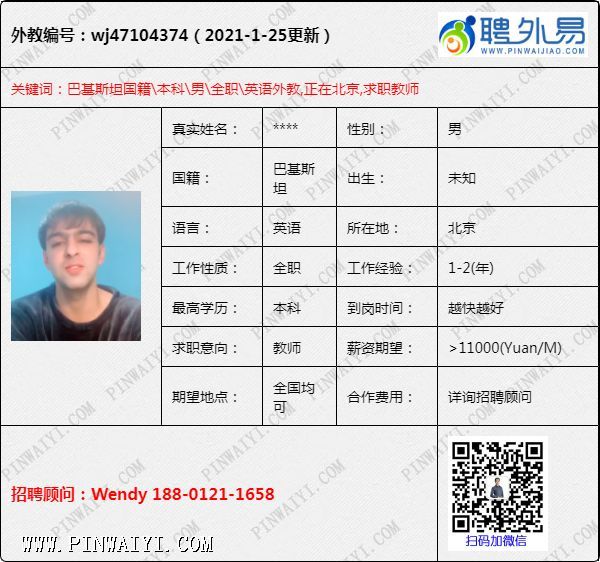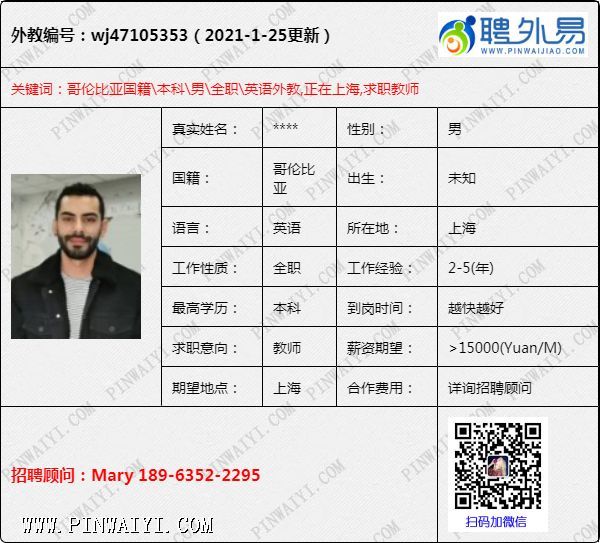 俄罗斯男,本科,两年上海教学经验,一年合肥,工签转(2021.06),求职上海,目前在合肥,5月结束合同到岗