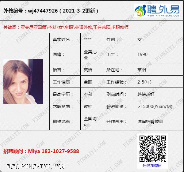 外教招聘快讯:每日外教推荐2021年3月3日出自:聘外易