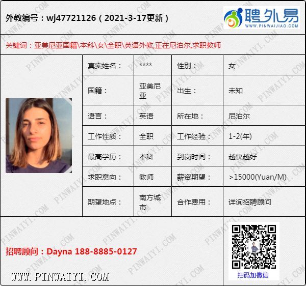 外教招聘快讯:每日外教推荐2021年3月20日