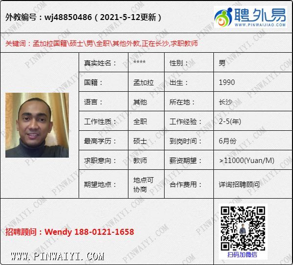 外教招聘快讯:每日外教推荐2021年5月13日