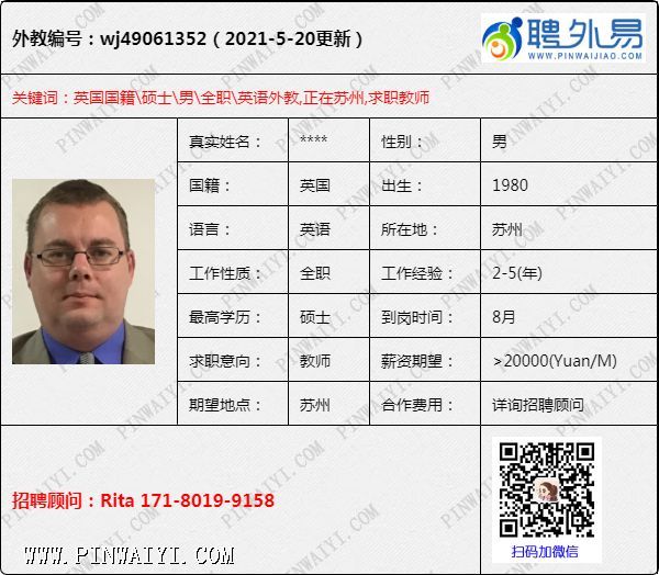 英国外教,卡迪夫大学文学硕士-历史专业,PGCE转聘,求职苏州,可以教学科