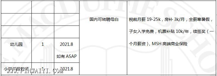 美达菲学校各校区外教招聘需求(2021/03/09)